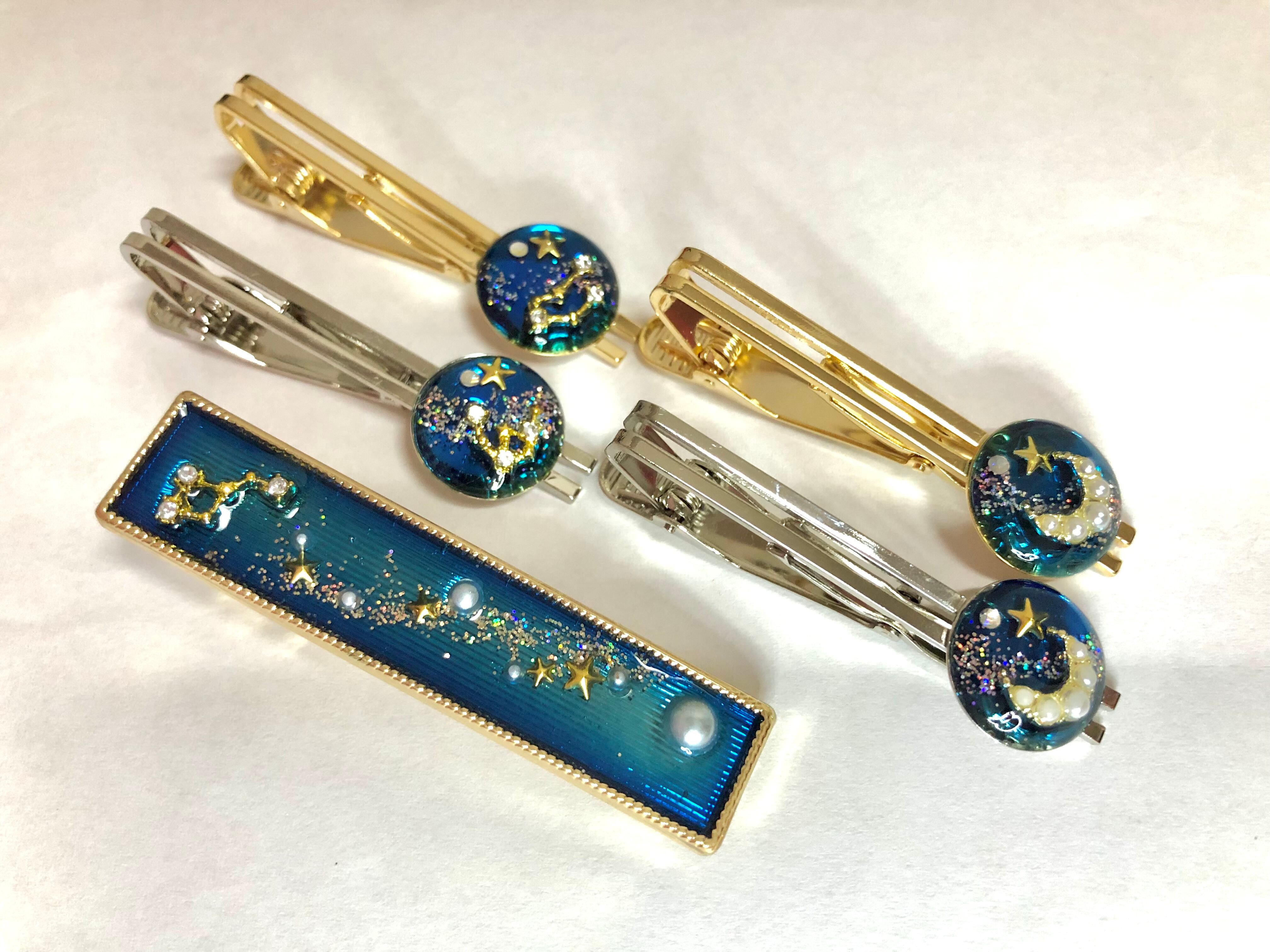 夜空に輝く蒼い星ネクタイピン、ヘアピン